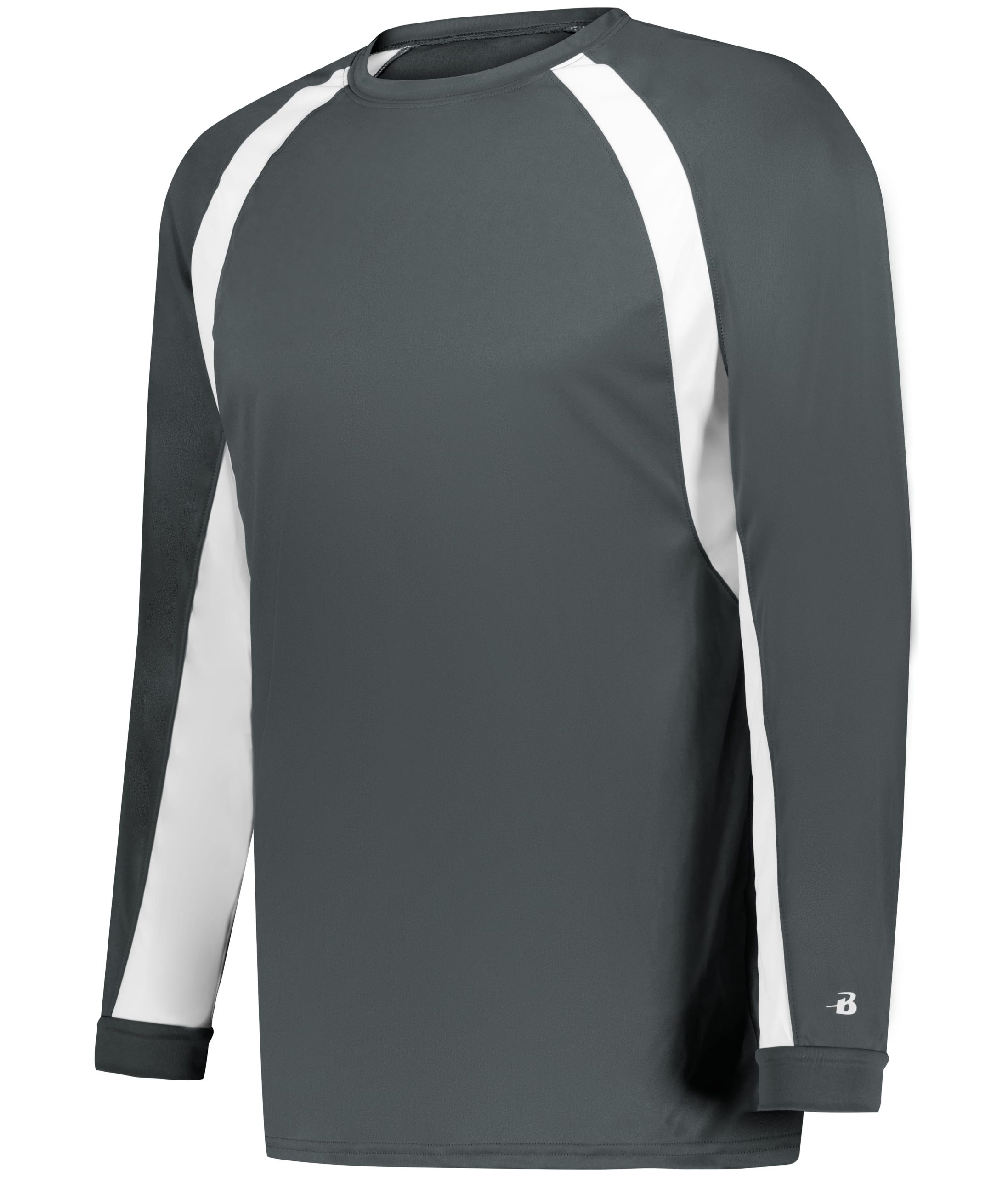 100% polyester performance fabric Wicks moisture Tag-free label Crew neck Raglan sleeve