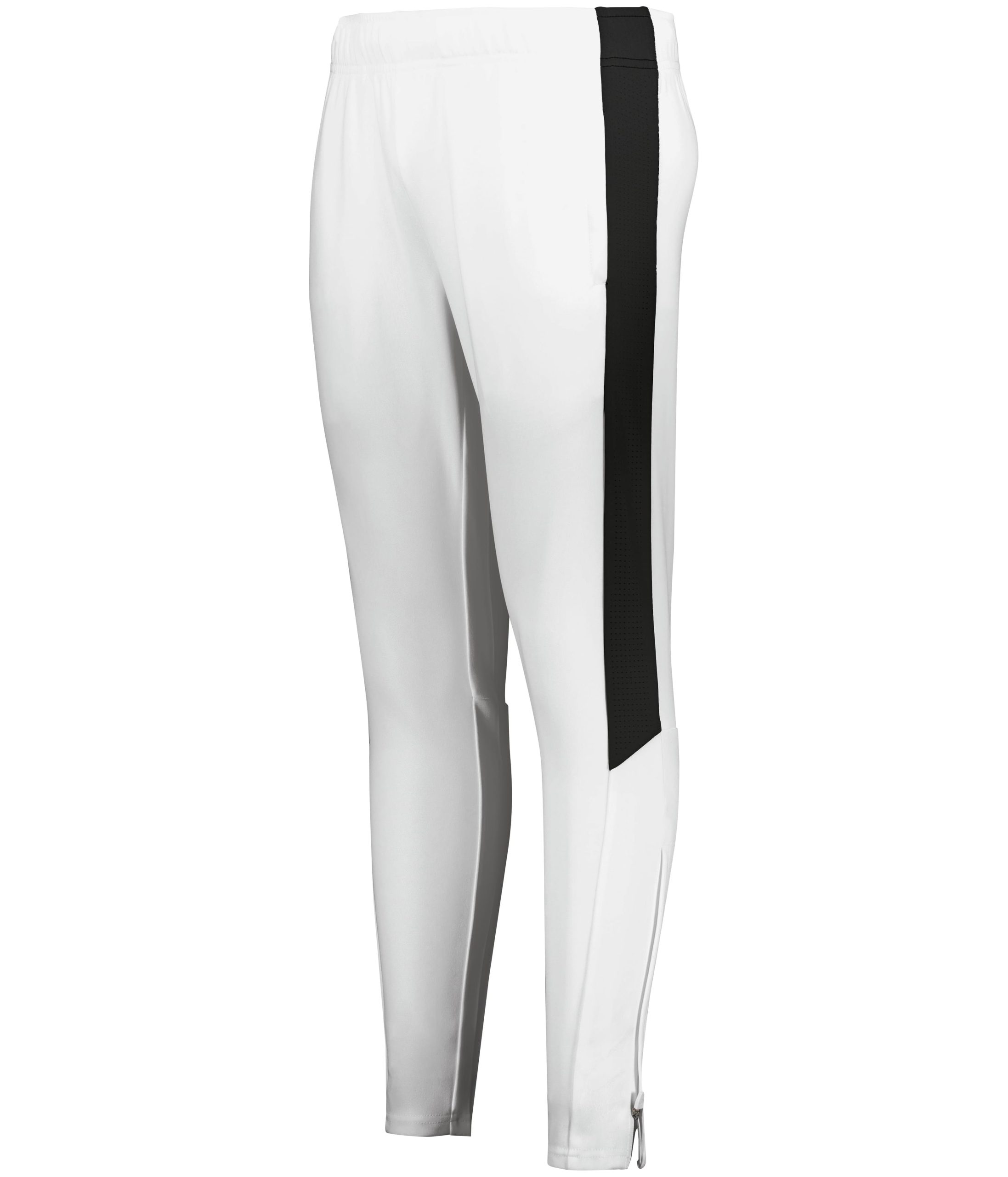 Dry-Excel™ polyester double-knit with mesh inserts, moisture-wicking, ladies’ fit, elastic waistband, side pockets, tapered leg, and lower leg zipper.
