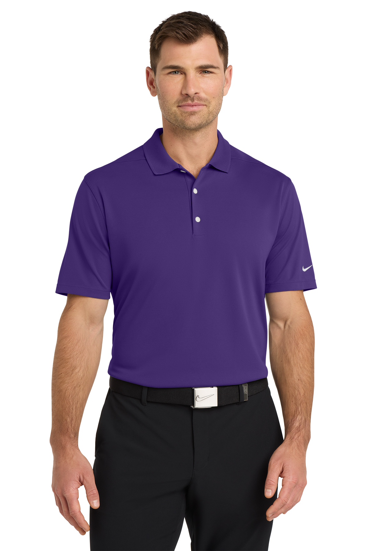 4.3-ounce polyester Dri-FIT shirt with flat knit collar, three-button placket, and contrast embroidered Swoosh logo.